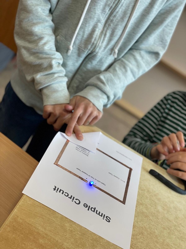 We had pre- and post-lab sessions where the children chose between LEGOs and origami. Then, we held a Physics Lab with Angela. The younger children experimented with colors, the decomposition of light, and how rainbows are formed. The older children worked with electrical circuits, experimenting and building using paper, copper wire, and modeling clay.
